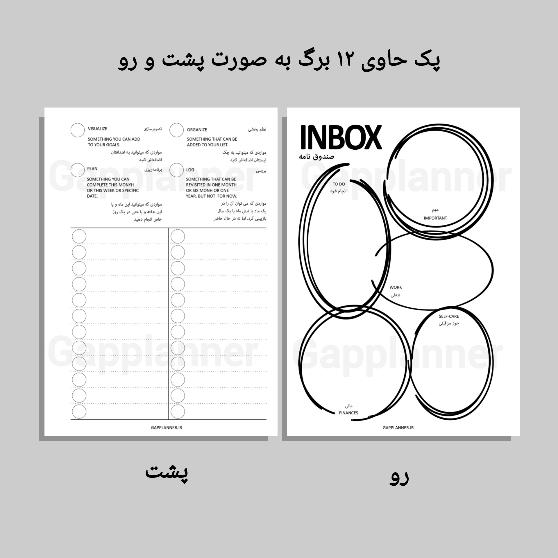 - تمام برگه ها به صورت بدون تاریخ طراحی شدهاند تا در صورتی که در هر روز موفق به برنامه ریزی نشدید بتوانید از برگه ها برای روز یا ماه آینده استفاده کنید.