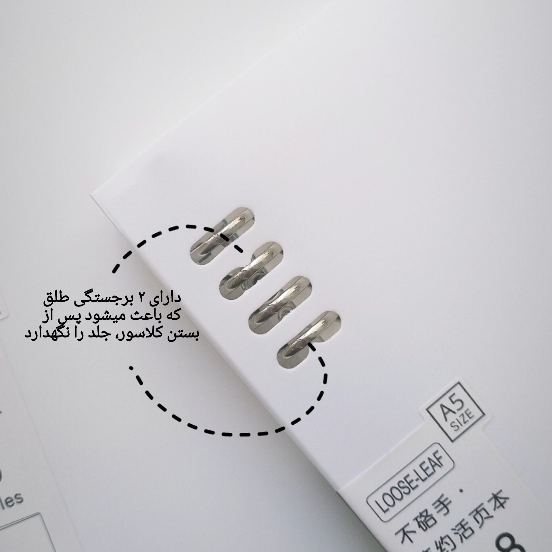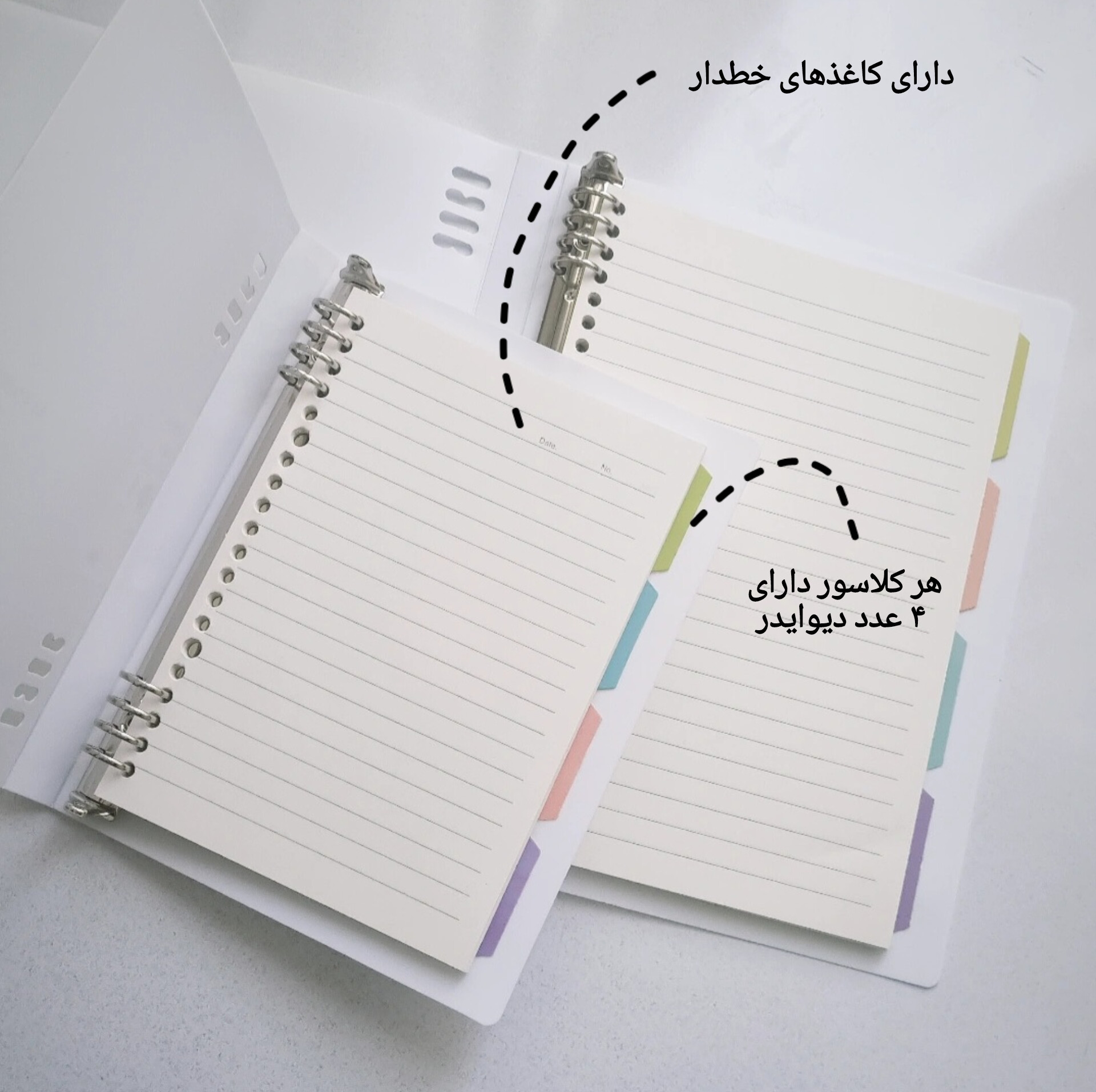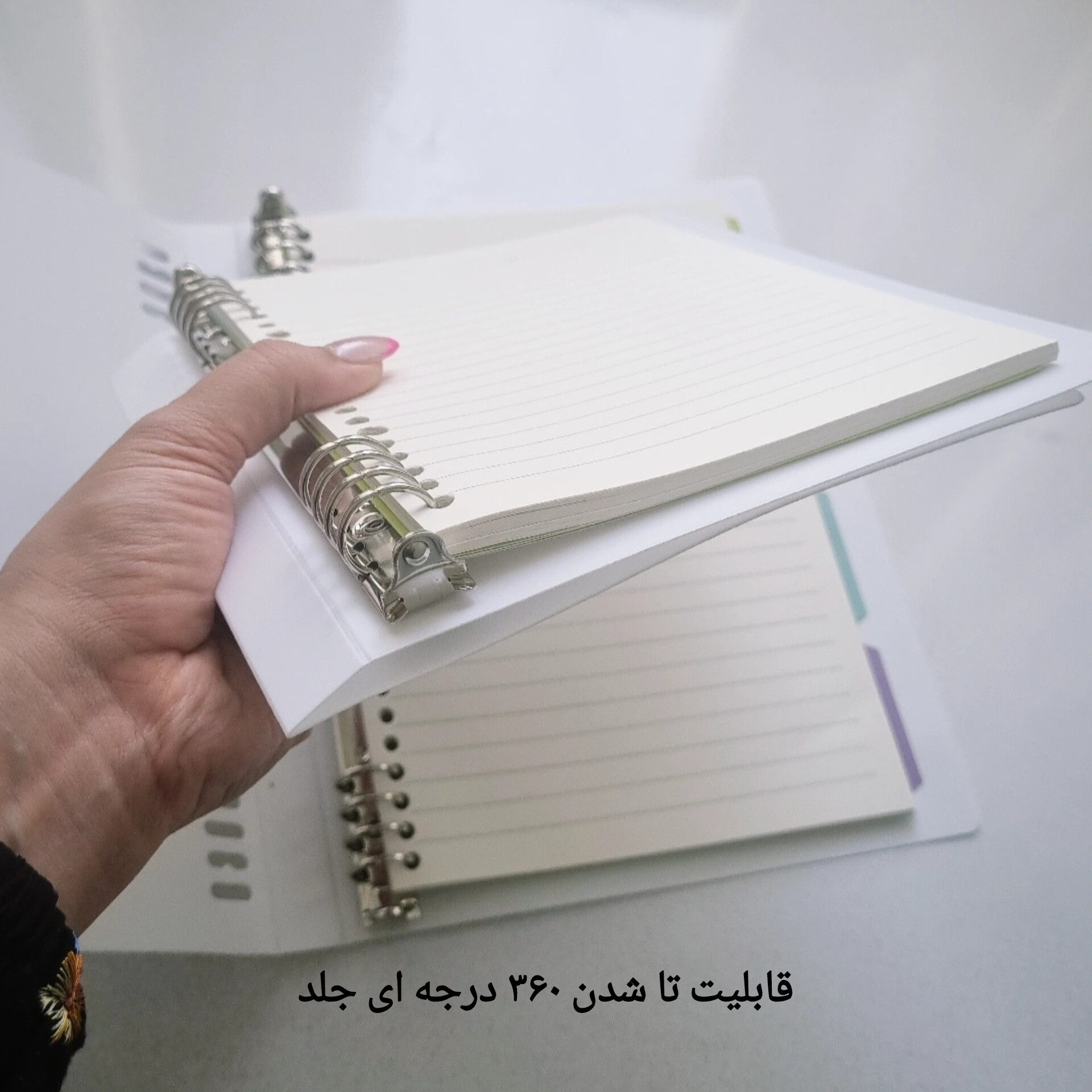• دو سایز آ۵ و ب۵ (سایز آ۵ ۲۰ حلقه و ب۵ ۲۶ حلقه است)