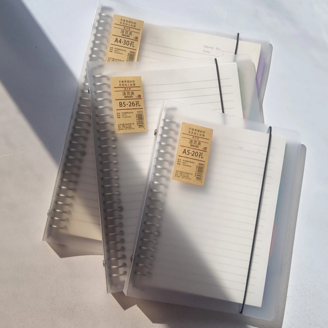 - سه سایز آ۵ و ب۵ و آ۴ (سایز آ۵ ۲۰ حلقه و ب۵ ۲۶ حلقه است و آ۴ ۳۰ حلقه است)