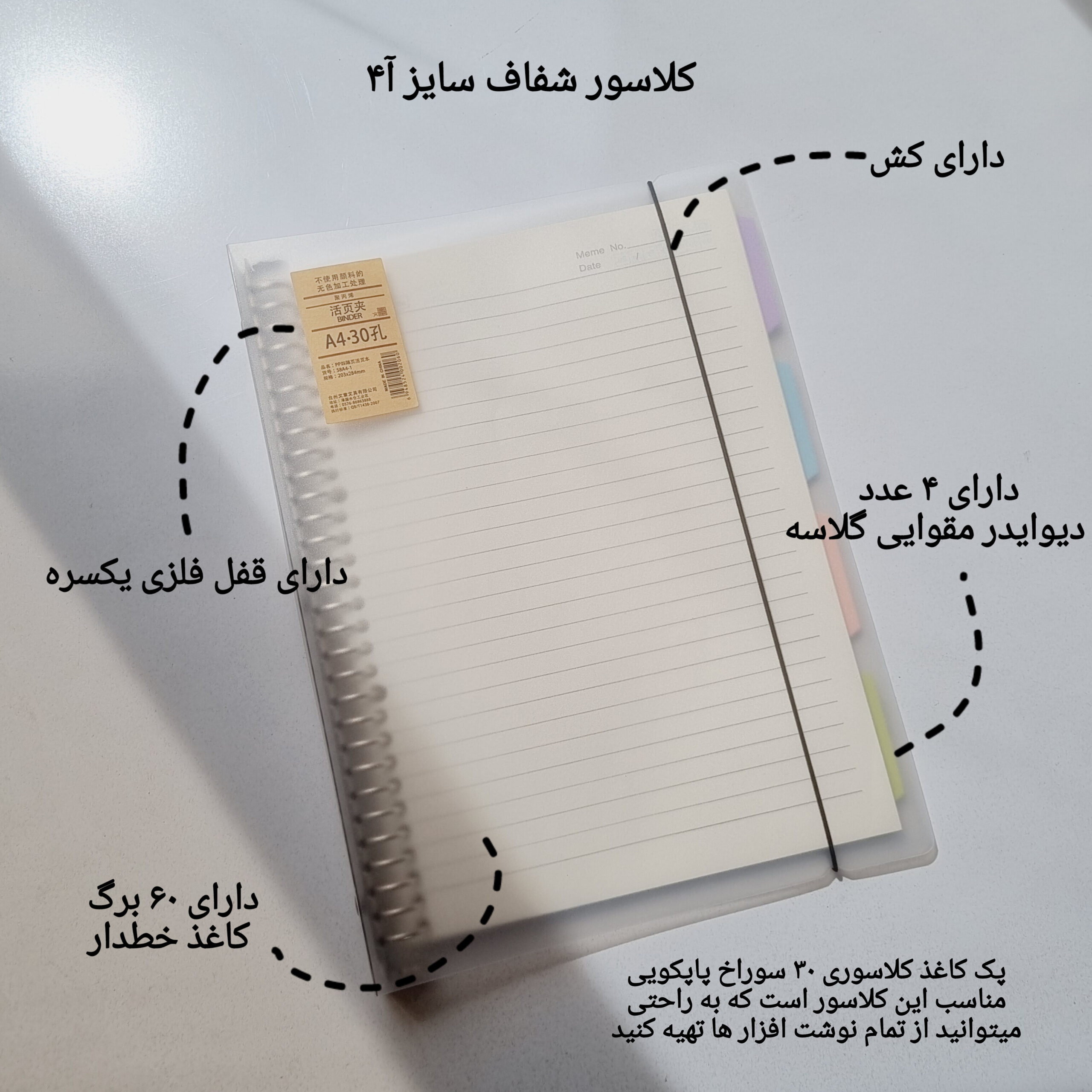 - حاوی ۵۰ برگ کاغذ خط دار (پک برگه یدک اش رو هم از گپ و هم از تمام لوازم تحریر فروشی ها میتونین تهیه کنید)