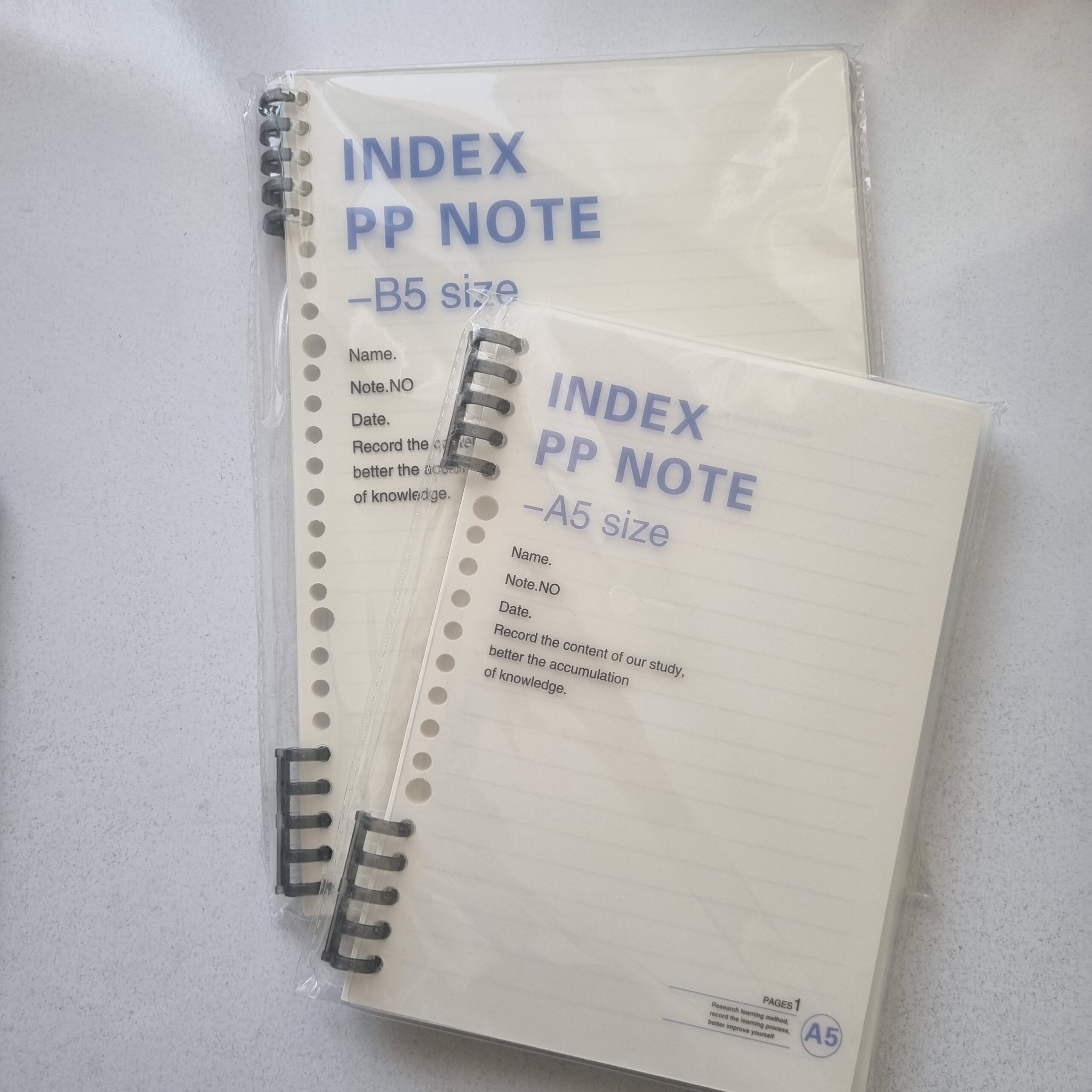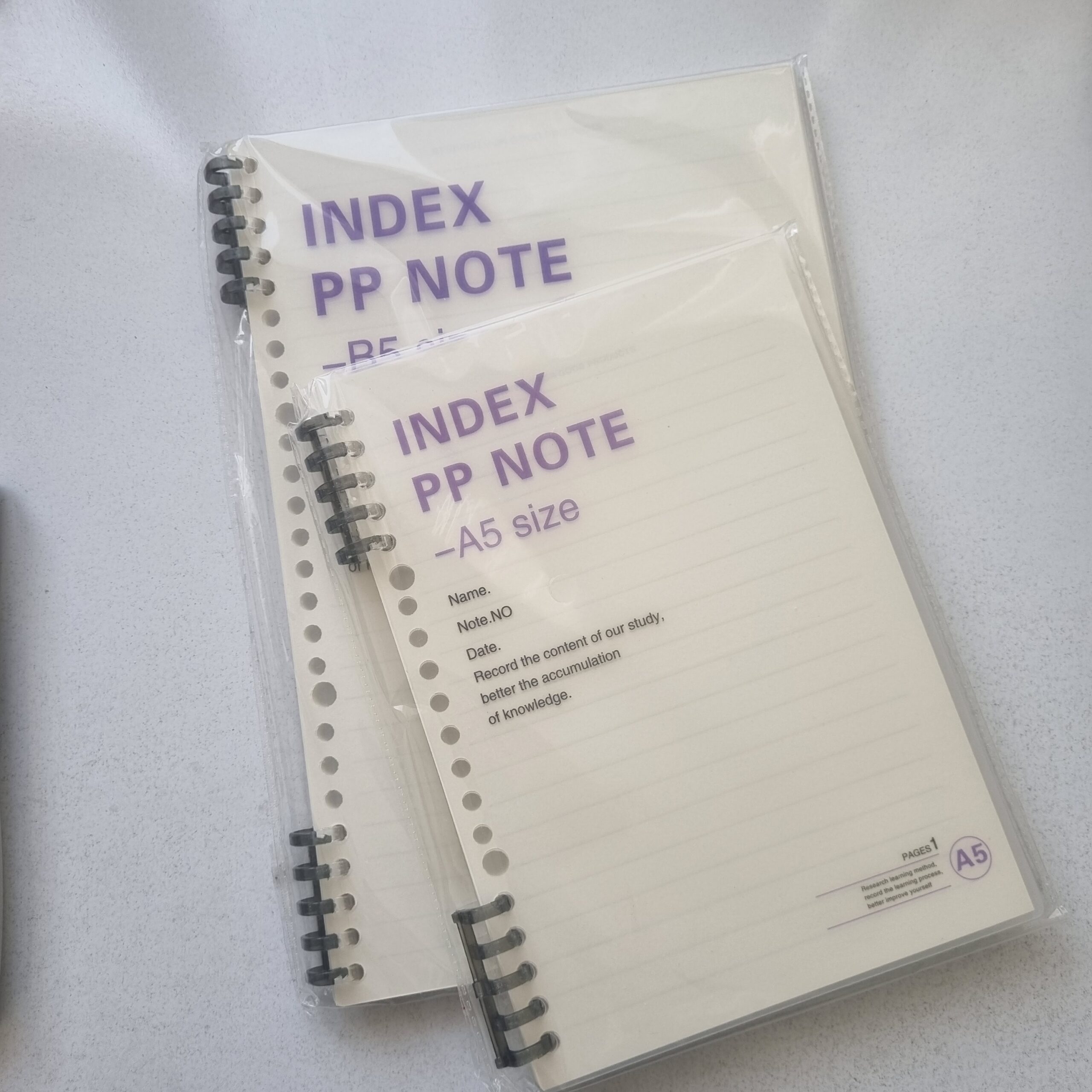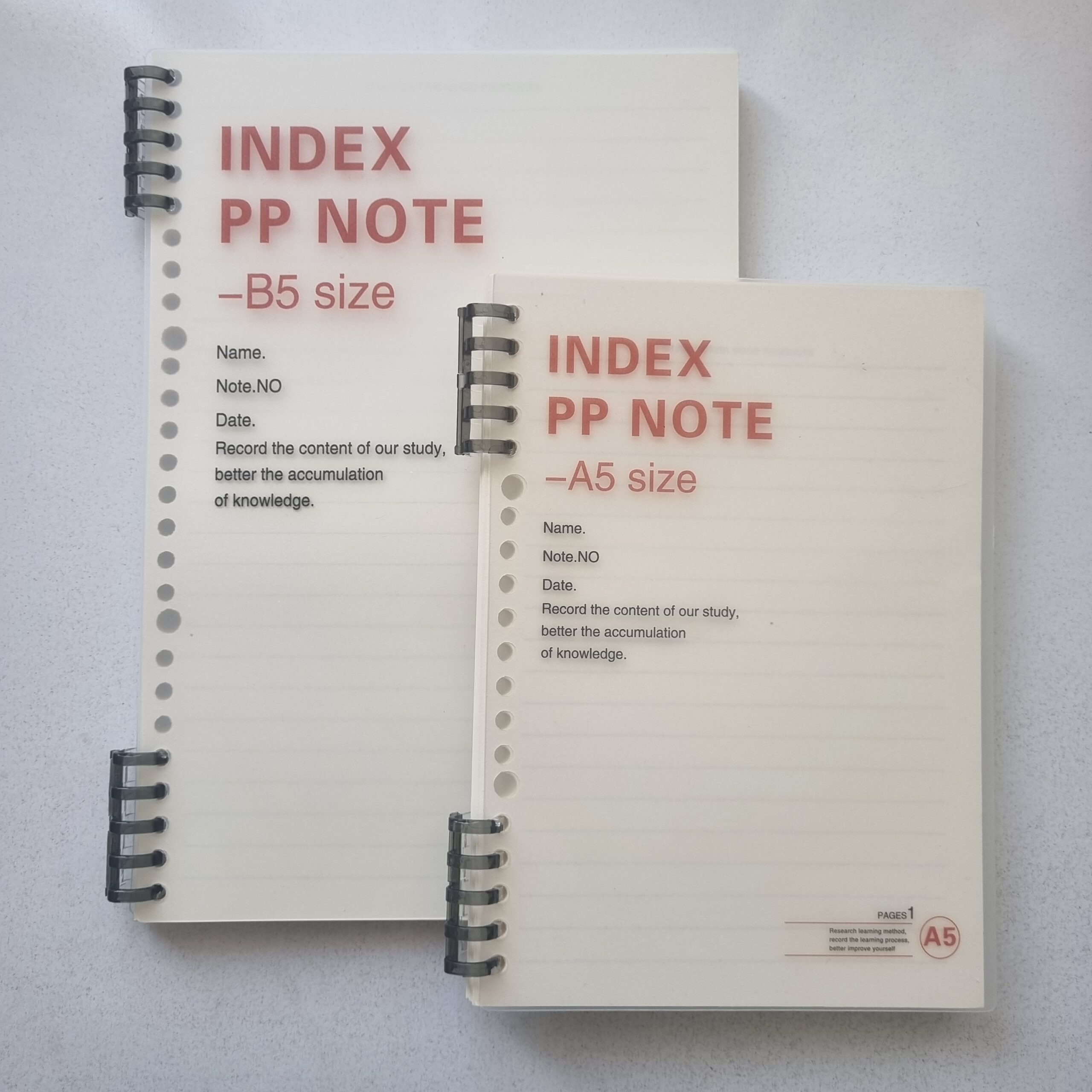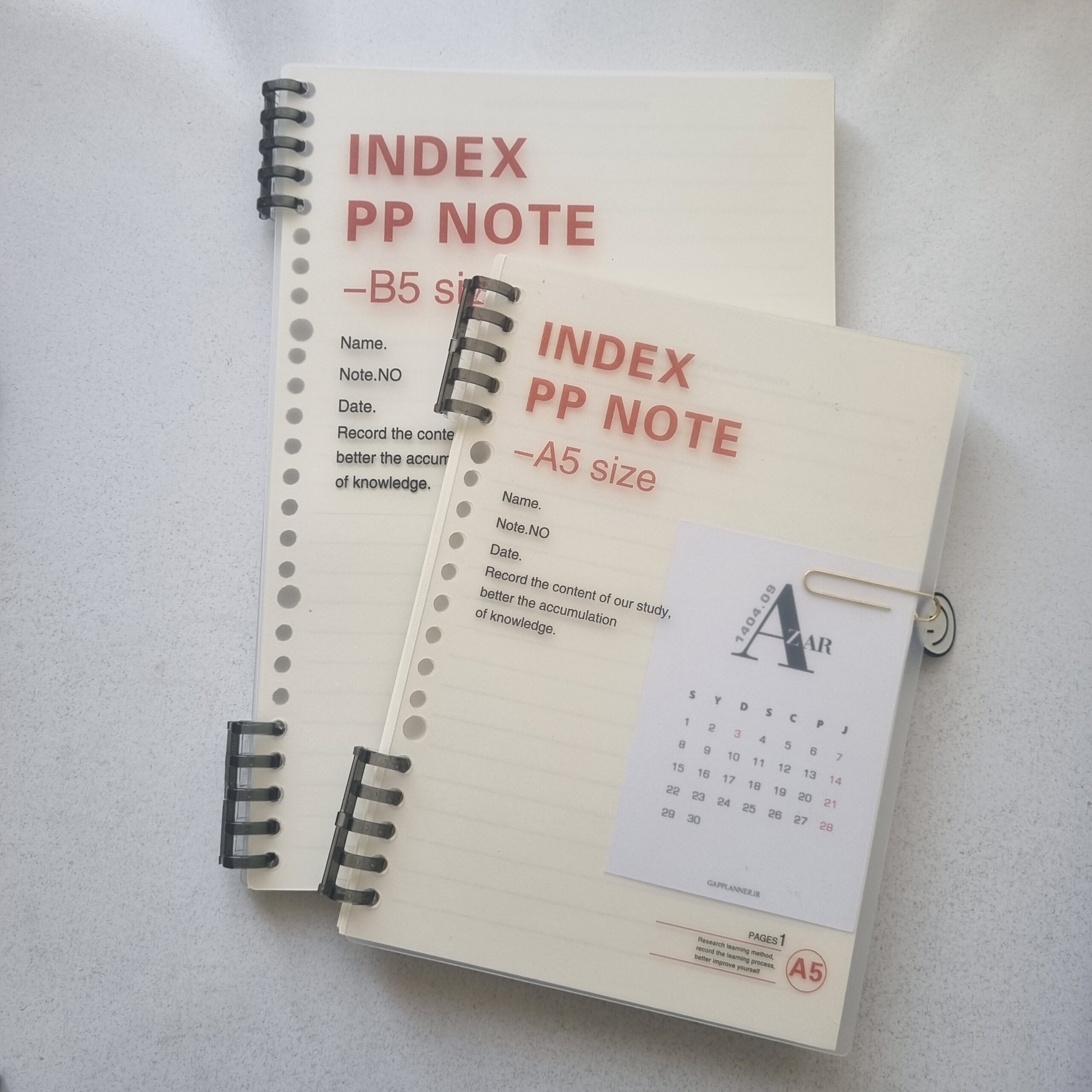 • دو سایز آ۵ و ب۵ (سایز آ۵ ۲۰ حلقه و ب۵ ۲۶ حلقه است)
