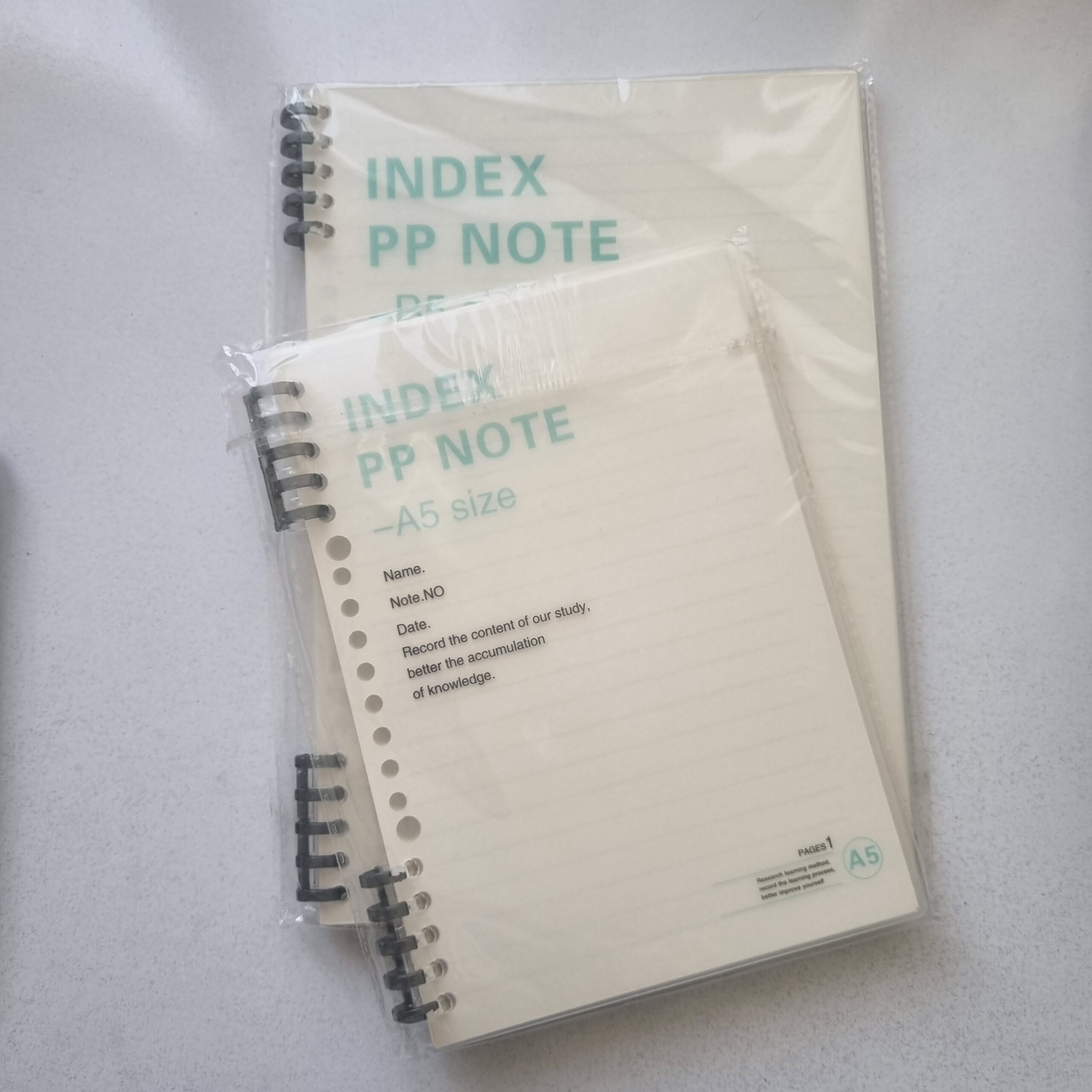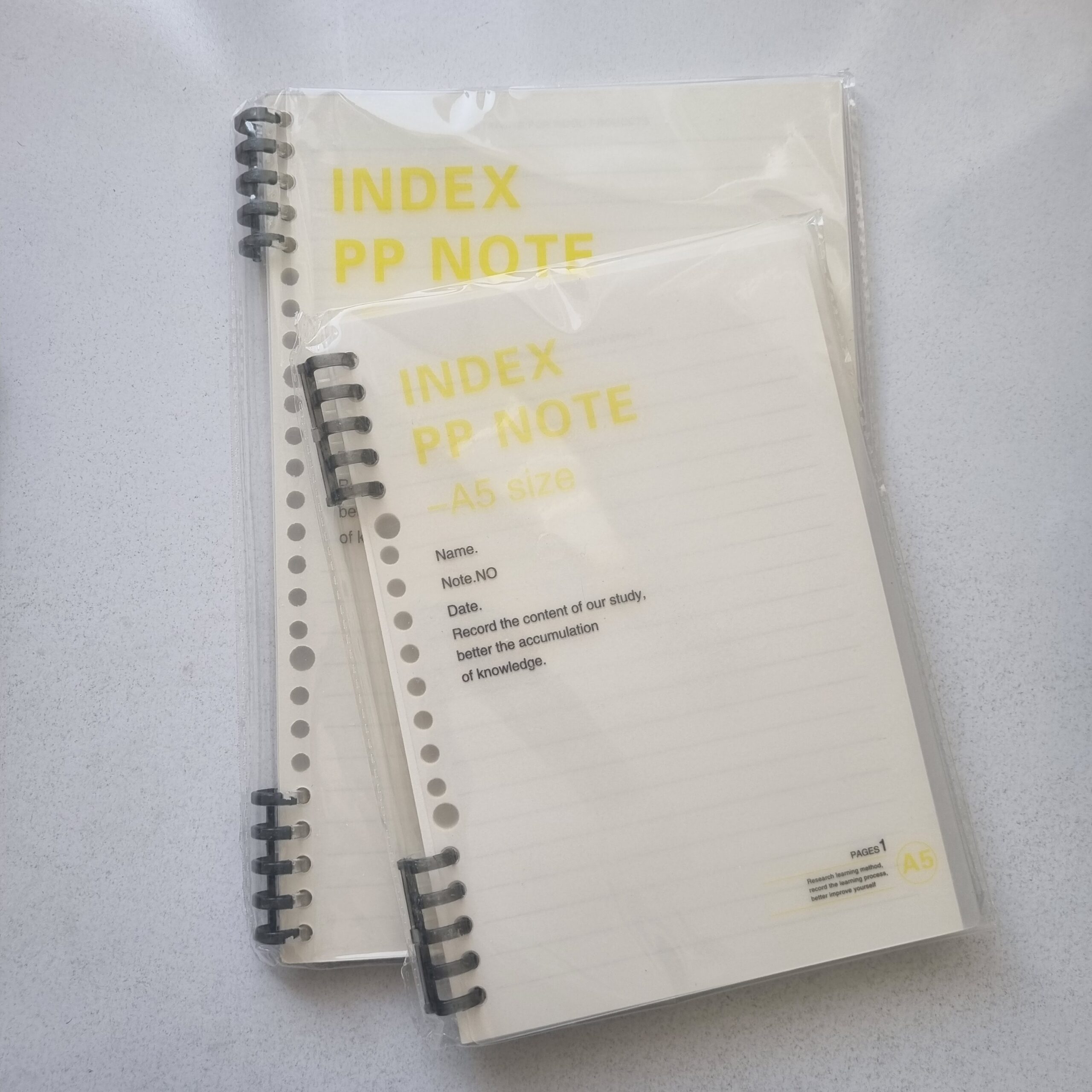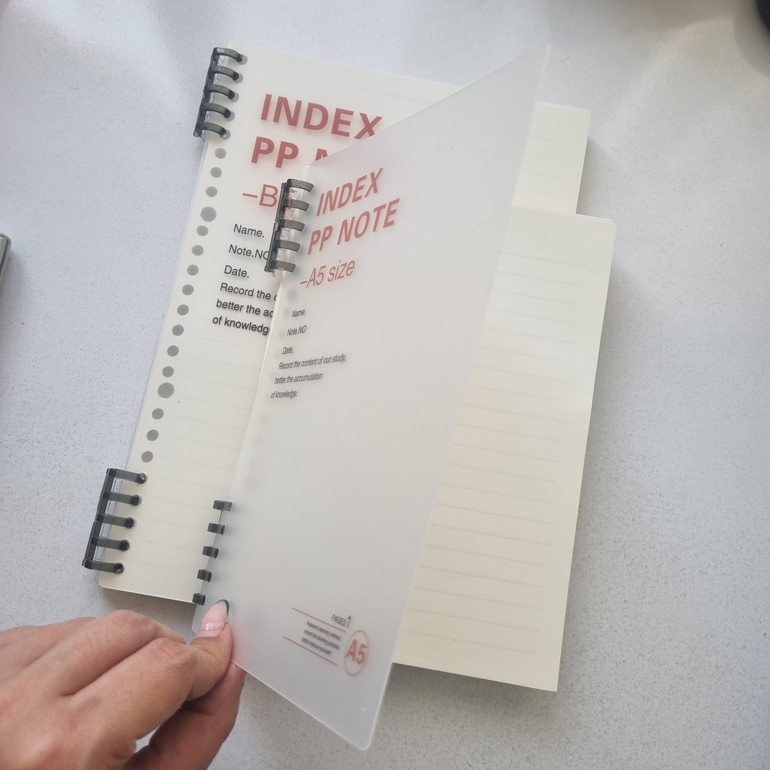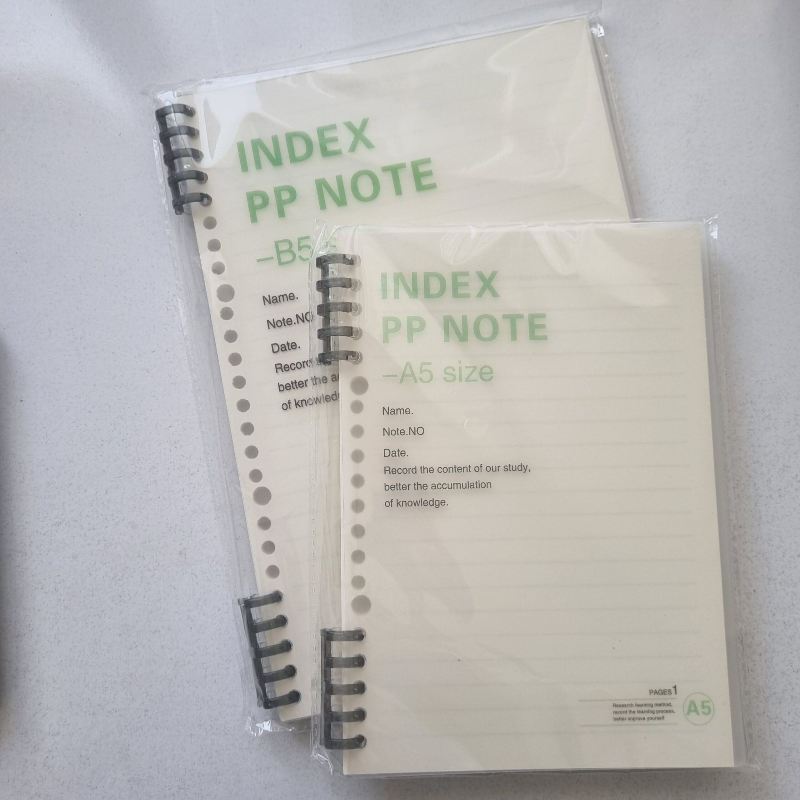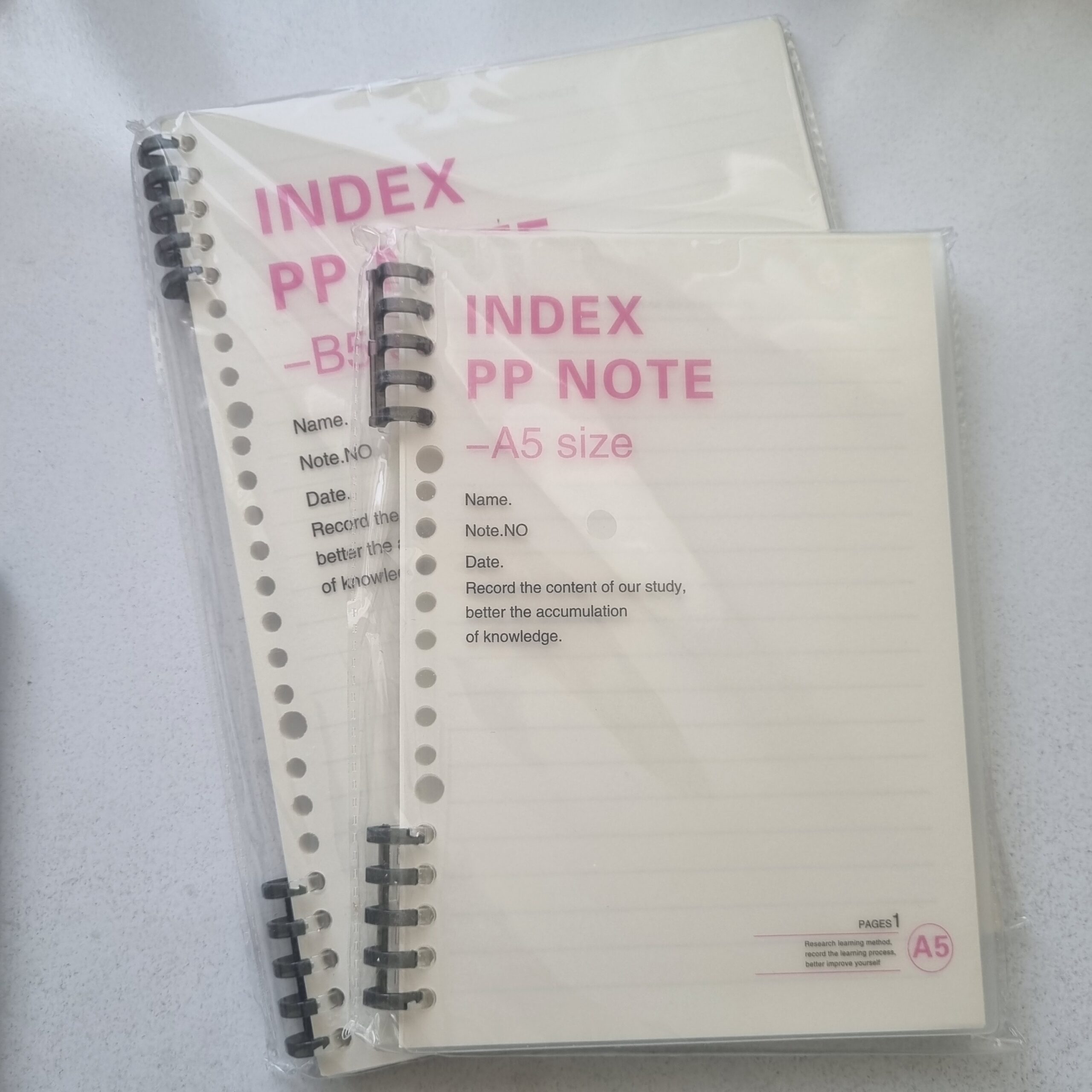 • دو سایز آ۵ و ب۵ (سایز آ۵ ۲۰ حلقه و ب۵ ۲۶ حلقه است)